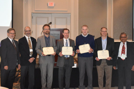 The photograph shows some of the authors receiving the award. Pictured, from left to right, are Bob Comstock (Symposium Chairman), Arthur Motta (Editorial Chairman), Walter Wolf, Erik Mader, Ron Adamson, Paul Cantonwine, and Anand Garde (B10 Symposium Committee Chairman). The photograph shows some of the authors receiving the award. Pictured, from left to right, are Bob Comstock (Symposium Chairman), Arthur Motta (Editorial Chairman), Walter Wolf, Erik Mader, Ron Adamson, Paul Cantonwine, and Anand Garde (B10 Symposium Committee Chairman).
